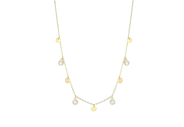 DIAMONDLITE CZ DOUBLE CIRCLE HUG NECKLACE IN STERLING SILVER WITH 18K GOLD PLATING. 16""+2"".