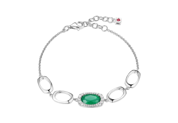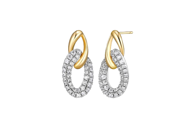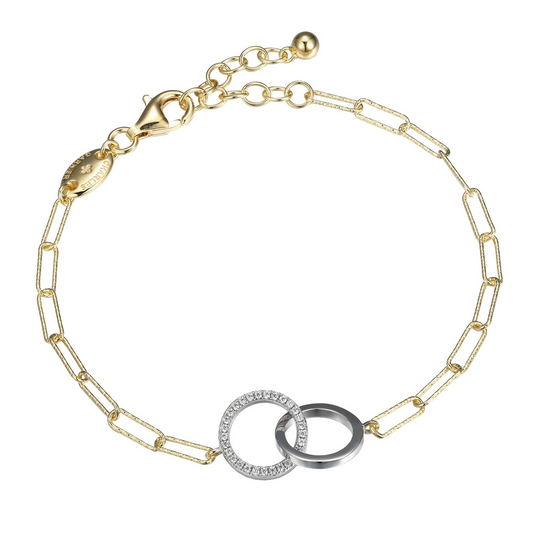 SS CG"PAPERCLIP" RHODIUM & GOLD PLATED INTERLOCKING CIRCLE WITH DIAMONDLITE CZ BRACELET
