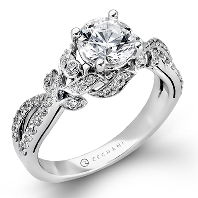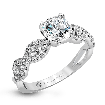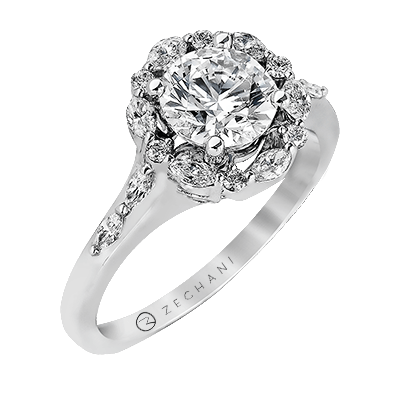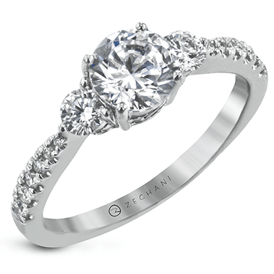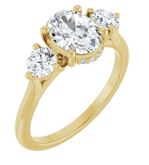 Three Stone Engagement Ring Mounting with Hidden Halo |124744