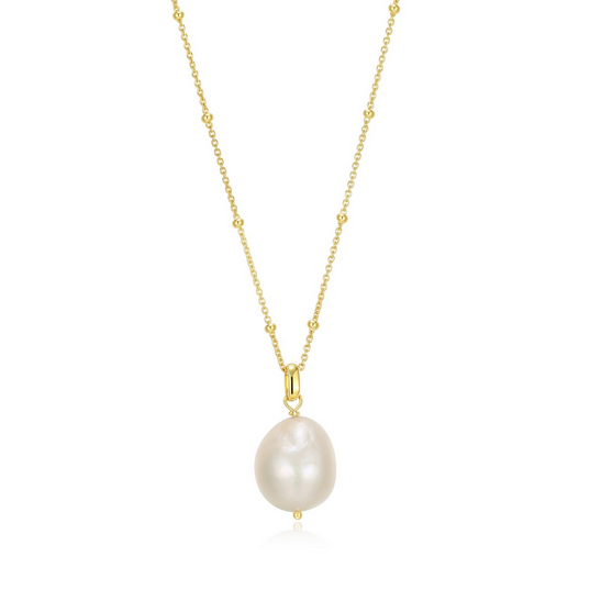 GENUINE BAROQUE PEARL LONG LARIAT NECKLACE IN STERLING SILVER WITH 18K GOLD PLATING