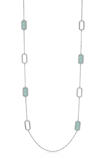 VAL MOTHER OF PEARL AND DIAMONDLITE CZ MULTI-DROP NECKLACE IN STERLING SILVER WITH 18K GOLD PLATING.