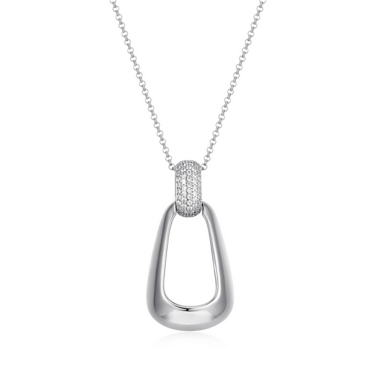 Diamondlite CZ pear solitaire rolo necklace in sterling silver with 18K gold plating