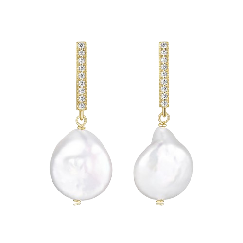 Diamondlite CZ genuine 12mm baroque pearl earrings in sterling silver with 18K gold plating.