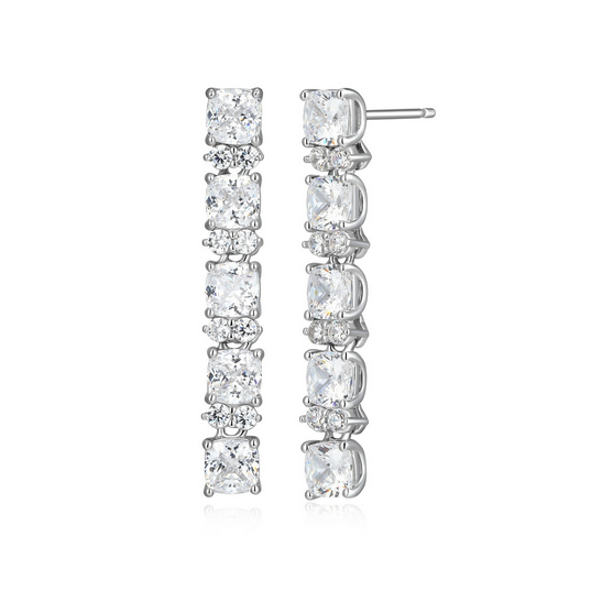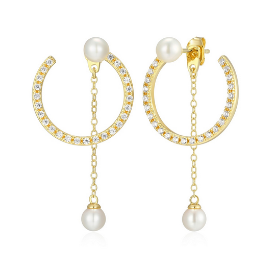 GENUINE WHITE PEARL AND CZ DROP EARRINGS IN STERLING SILVER WITH 18K GOLD PLATING.